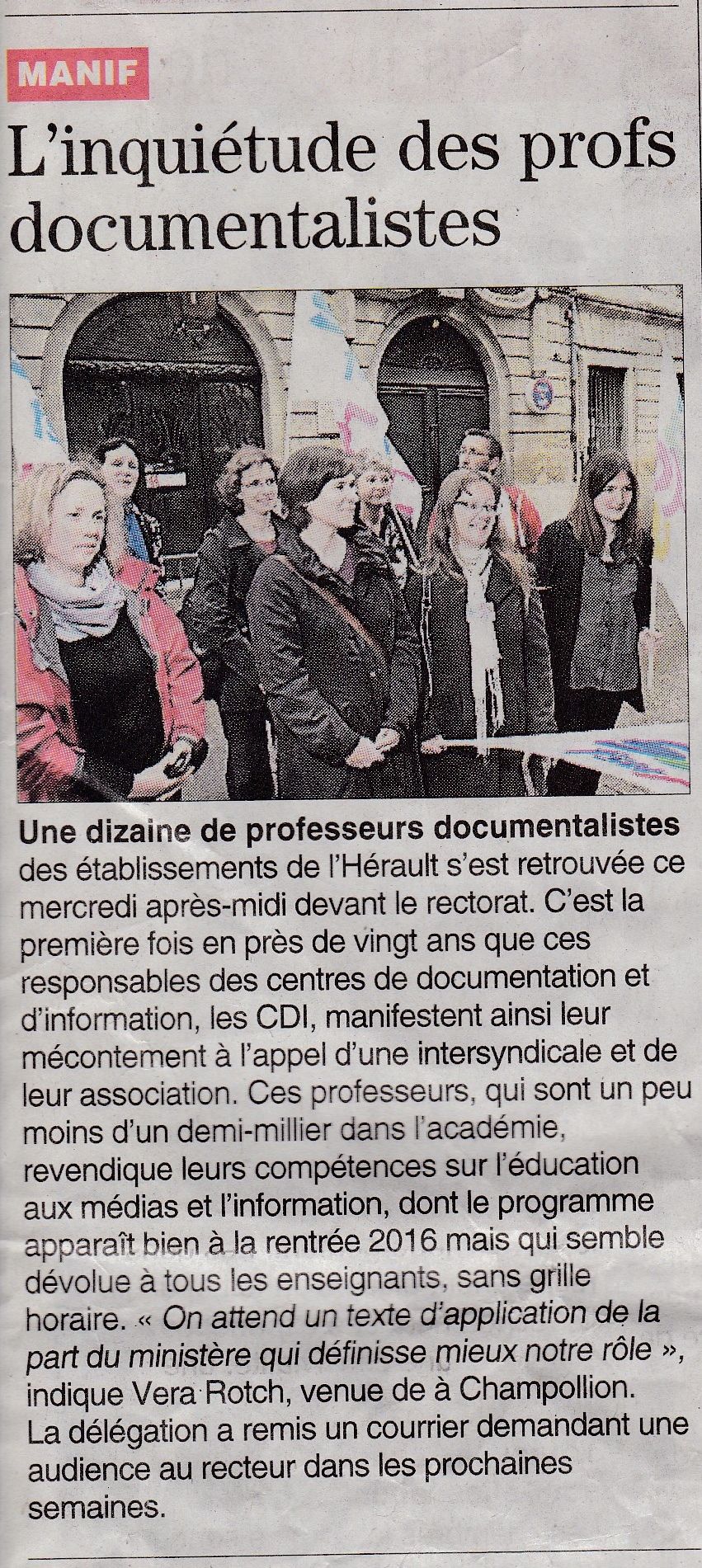 Elle a permis également de communiquer sur notre métier et ses problématiques auprès des médias (articles dans La Marseillaise et Midi Libre, reportage sur France 3 Languedoc).