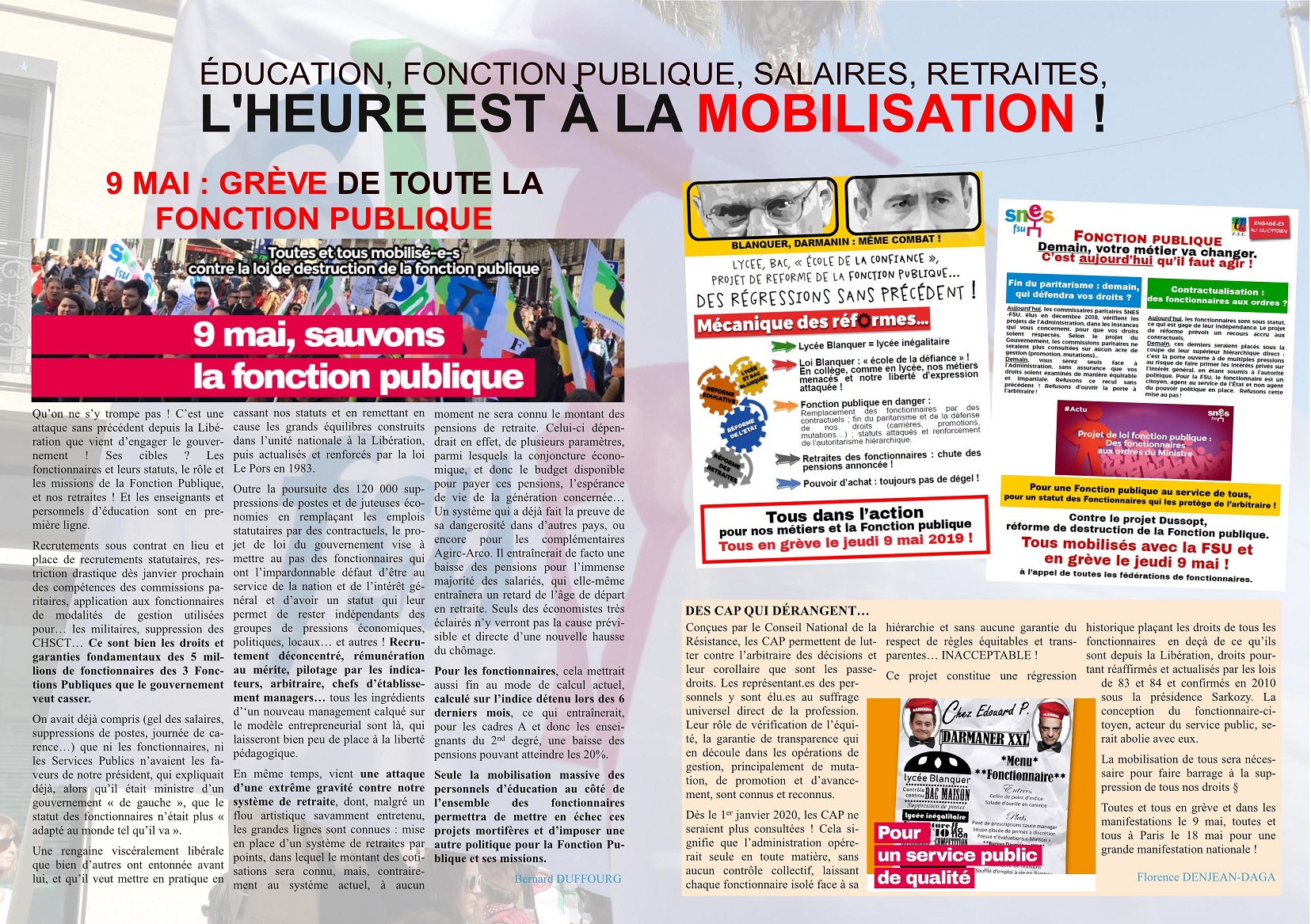 Jeudi 9 mai : pour la défense de l’Éducation, de la Fonction Publique, des salaires et des retraites,
