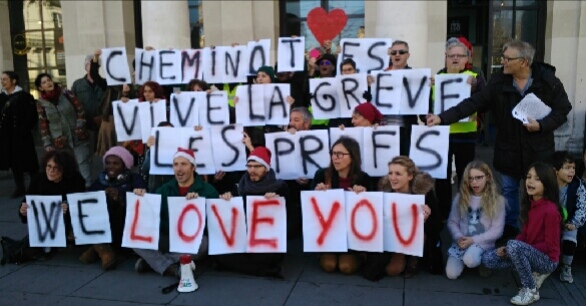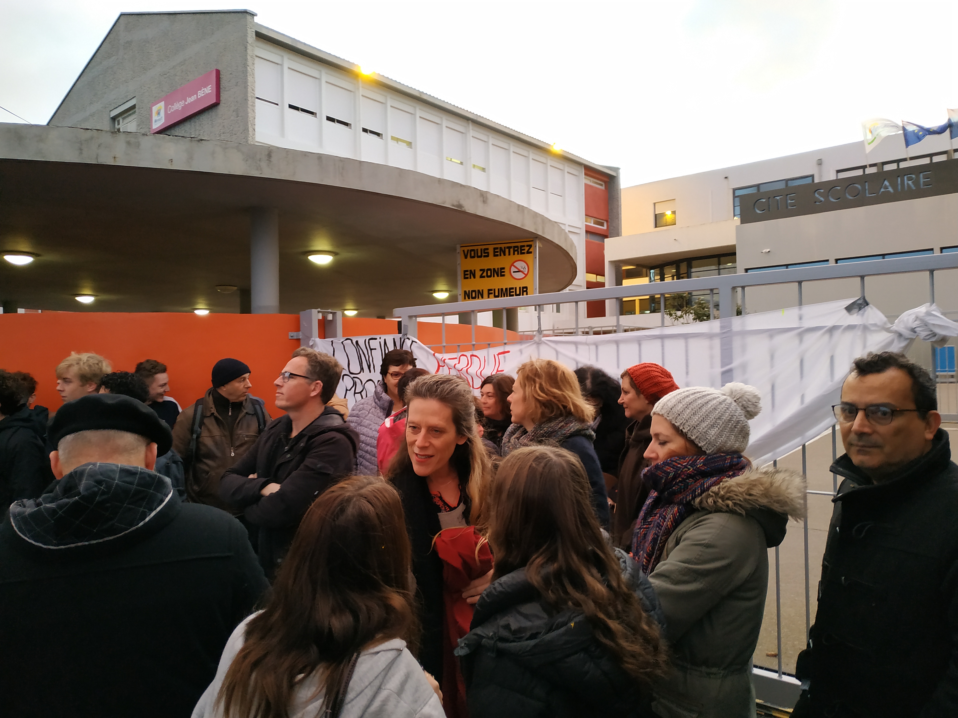 Aujourd’hui, vendredi 6 décembre, nous nous sommes réunis à 7h30 à une trentaine d’enseignants du lycée Jean Monnet.