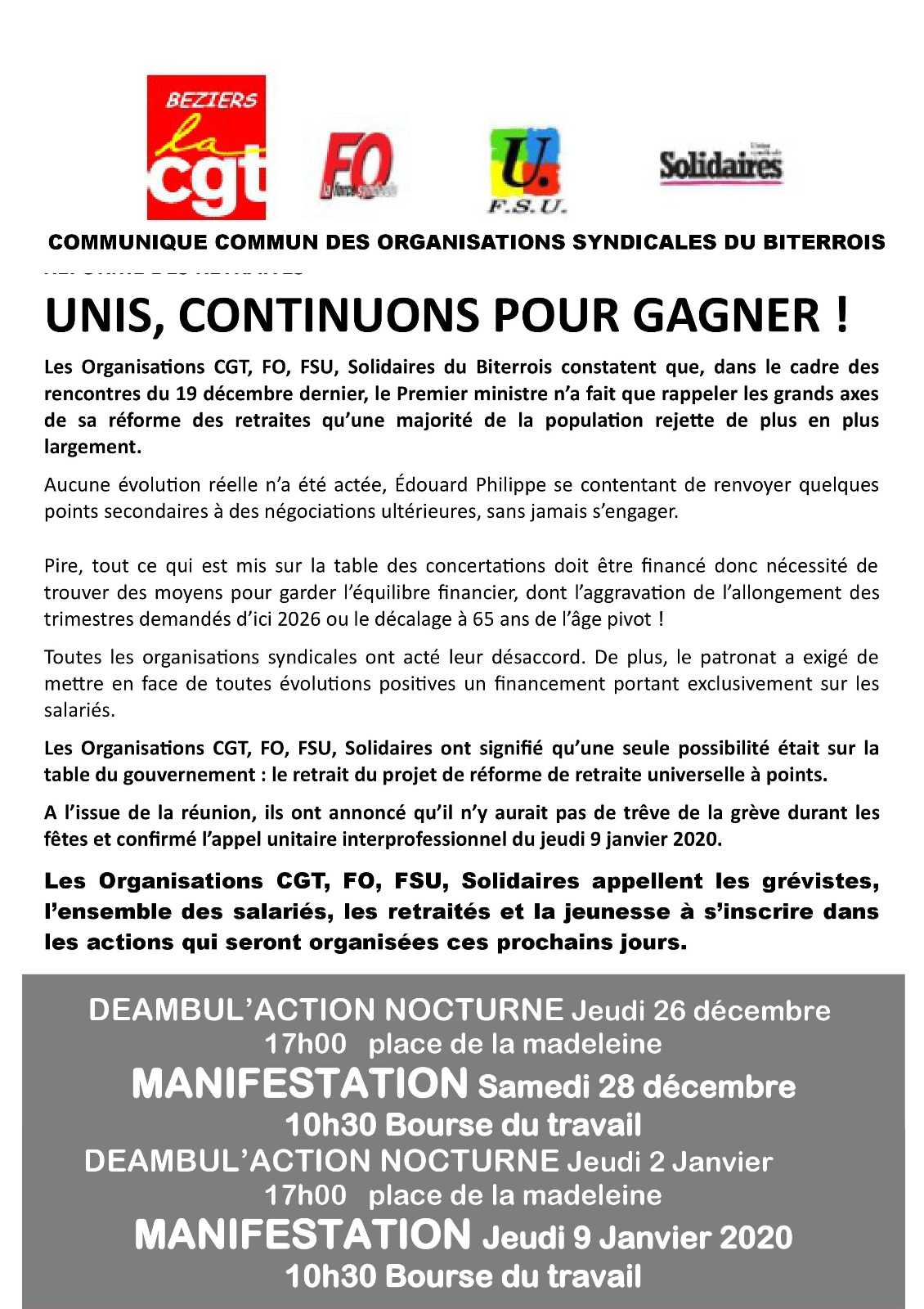 L’intersyndicale biterroise reste donc fortement mobilisée. Vous trouverez en pj le communiqué commun et le plan d’actions pour cette semaine.