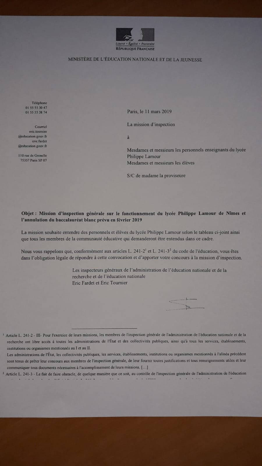 14/3 - « descente » des IG au lycée Philippe Lamour Nîmes